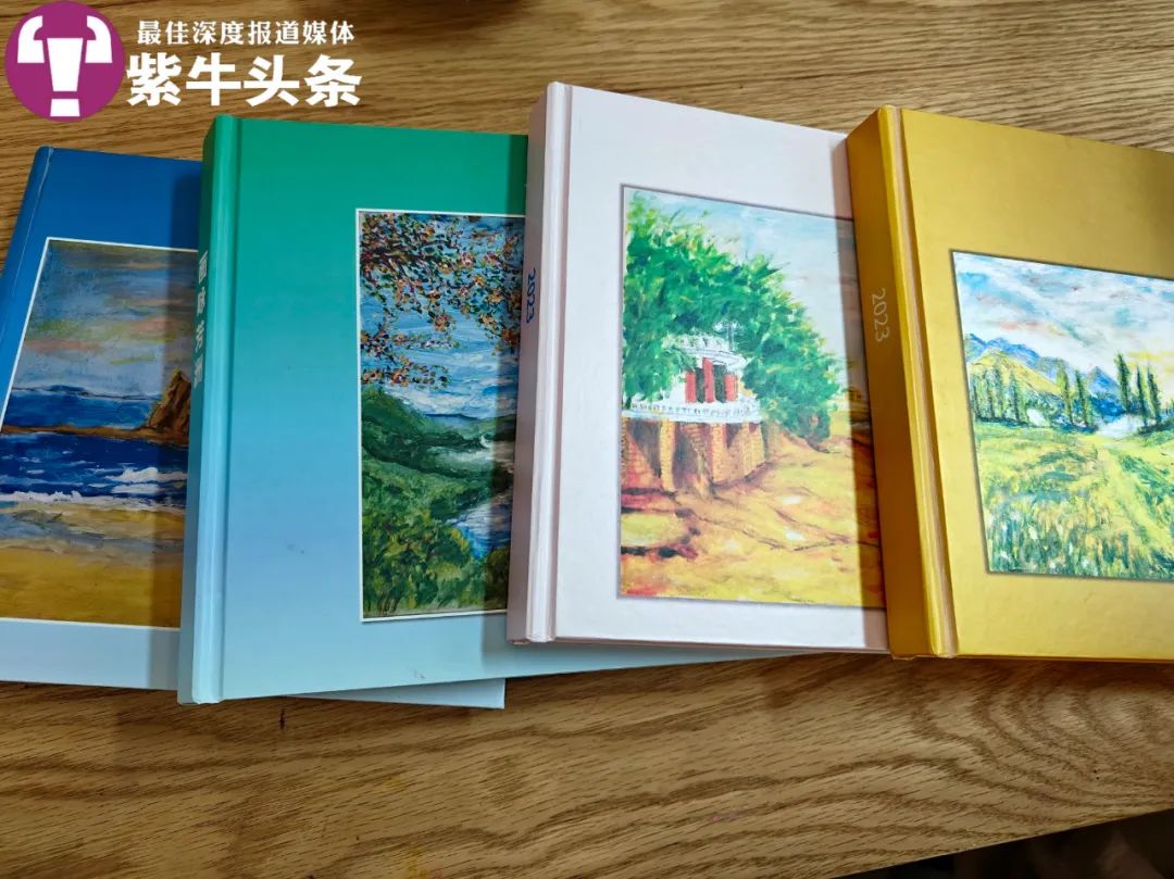 2021年至今,短短四年時間,她創作了500多幅作品,匯集成了四本厚厚的畫冊。