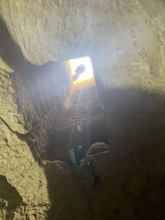 下豎井墓的唯一方式,是吊籃。(受訪方供圖)