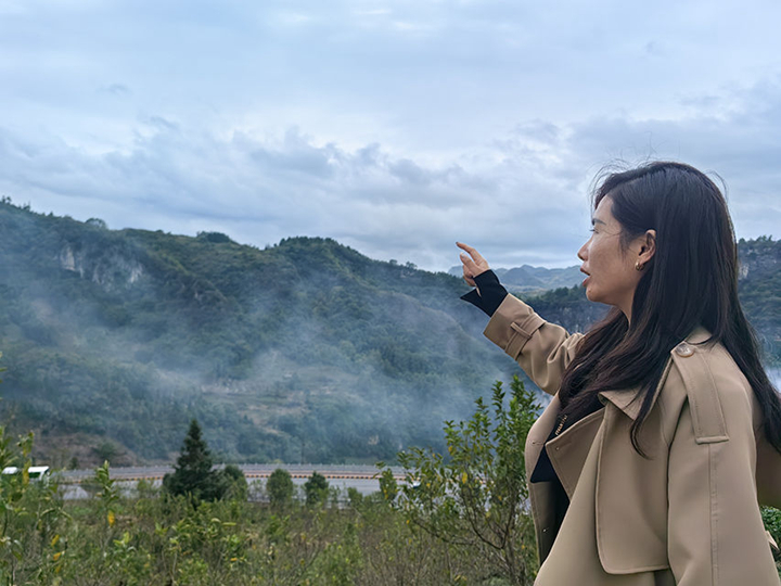 站在楊妞花家門口,可以看到對面山上有一個大溶洞。“我小時候記憶中就有這個山洞,2021年5月我第一次回家,看到這個山洞,就知道找到家了。”楊妞花說。