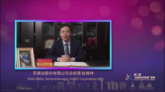 蘇美達股份有限公司總經理趙維林代表“絲路夢想基金”捐贈企業講話。