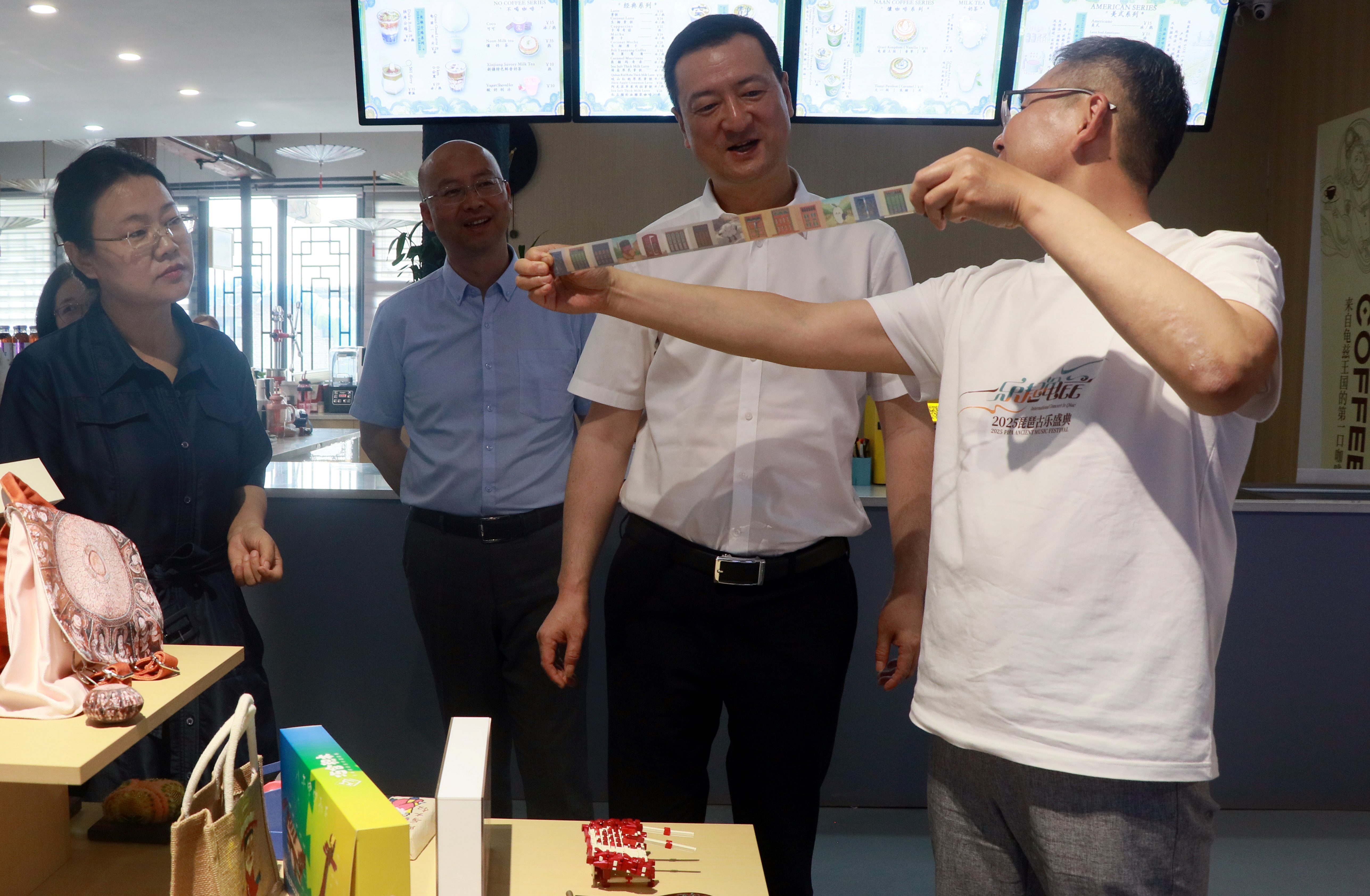 當(dāng)天下午,楊勇指揮長(zhǎng)、王春梅部長(zhǎng)和趙洪俊、張勉副總編輯一起參觀展覽并對(duì)展品進(jìn)行點(diǎn)評(píng)。楊勇指揮長(zhǎng)表示,絲路樂享匯之五弦琵琶與楊琴榫卯模型積木、甬庫膠情幸福連連門、文創(chuàng)膠片、數(shù)字短片《跟著熊貓游庫車》具備較高實(shí)用價(jià)值,值得推廣和轉(zhuǎn)化,可以在甬庫兩地創(chuàng)造社會(huì)、經(jīng)濟(jì)效益。