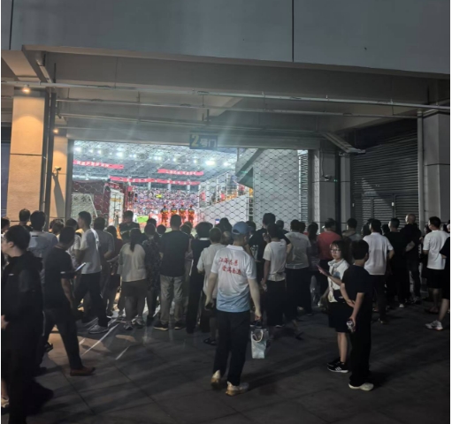 ↑每個主場外都有大量無票觀眾逛市集、看熱鬧,這是在南通主場外,不少群眾聚集在出入口“管窺”比賽