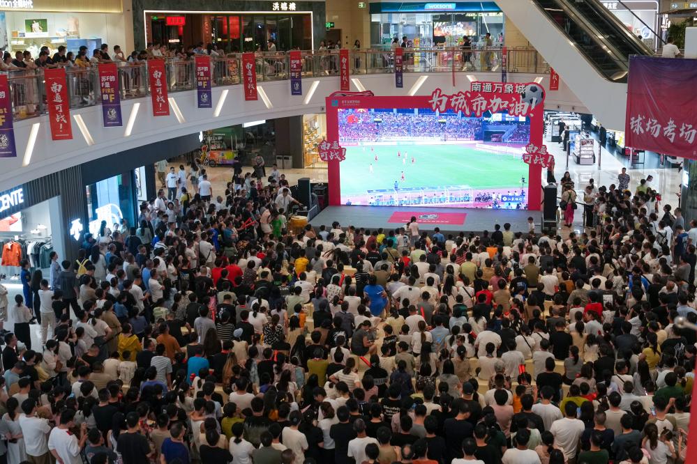 ↑6月29日,市民、球迷在南通市內(nèi)一處商場的“第二現(xiàn)場”觀看比賽直播。新華社記者李博攝
