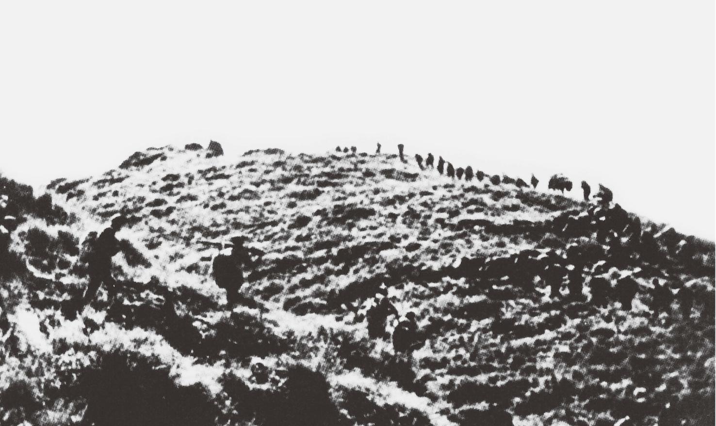 大疲之后,睡不欲醒,8時許才起床,部隊已整裝待發。胡亂吃些飯,拔腳即走。