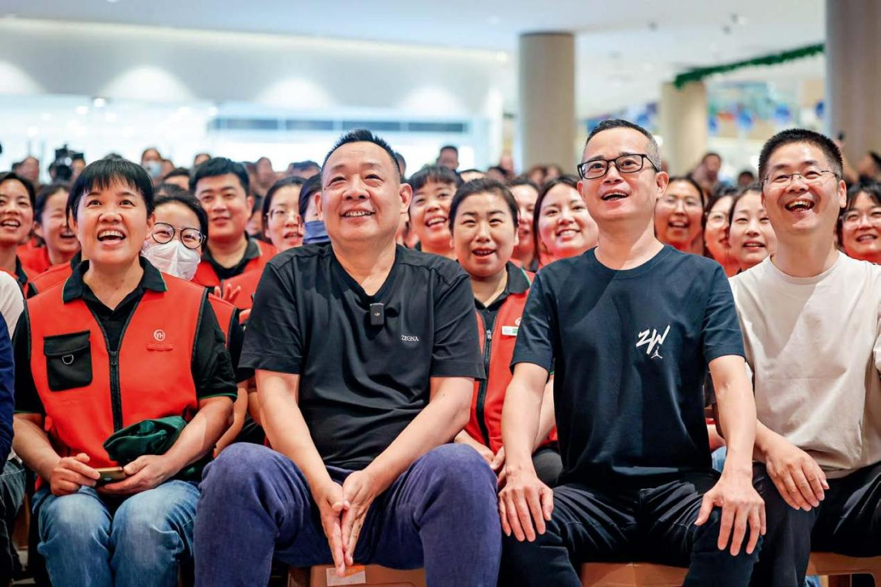 近年來,胖東來幫助永輝超市調改備受業界關注。圖為2024年5月30日,于東來(前排左二)在河南鄭州參加永輝超市鄭州信萬廣場店調改啟動儀式。