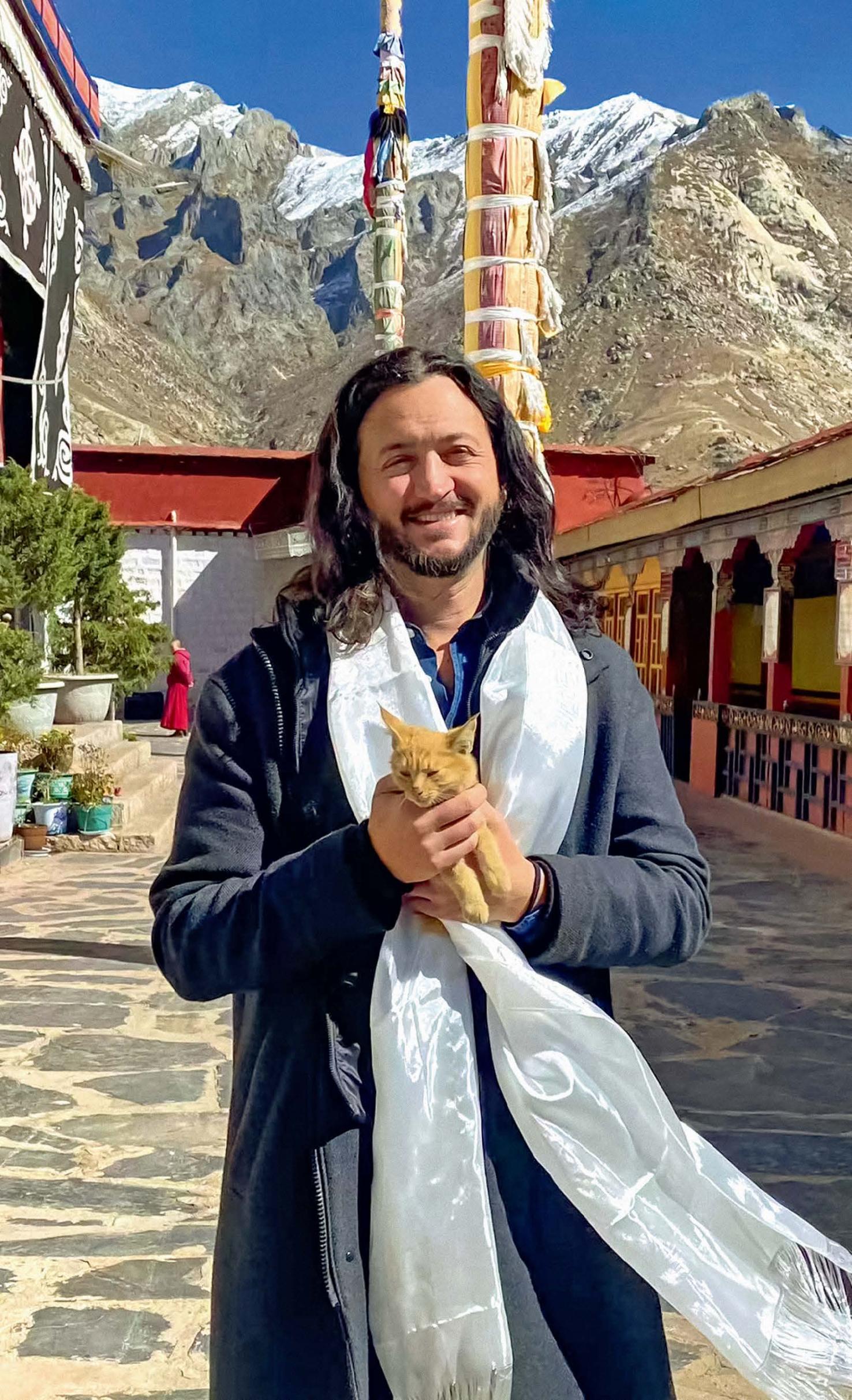 2024年10月,李·坎普(右)開啟西藏之旅,和一位佛教徒成了好友。(受訪者供圖)