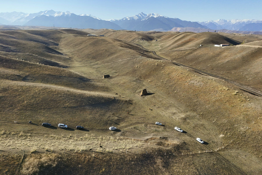 A bird's-eye view of Qiongkushitai, a pastoral village nestled in the Tianshan Mountains in Xinjiang. [Photo by Hu Huhu/Xu Hongyang/Xinhua]