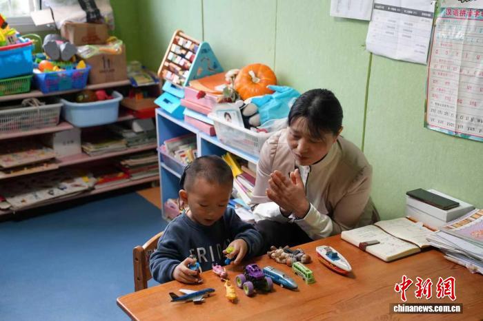 圖為在江西鷹潭市特殊需要兒童康復中心,曹有紅給孩子上課。吳思瑜 攝