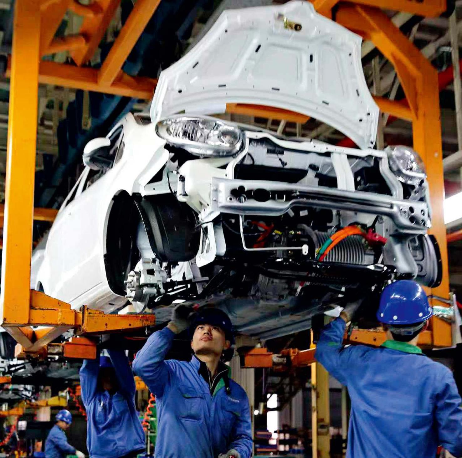 江西江鈴集團新能源汽車有限公司生產線上,工人們正在加緊組裝新能源汽車。