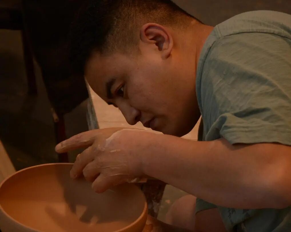“當時就想學個手藝掙錢,因為家里很窮。”回憶起最初進入陶瓷世界的契機,青年陶藝家韓向東記憶猶新。長在內蒙古赤峰,從小是個放牛娃,因為寫字畫畫好看,班主任給他指了條路——景德鎮陶瓷大學。