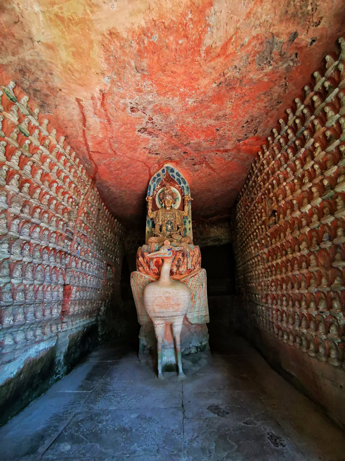 大足石刻位于重慶市大足境內(nèi),始鑿于初唐永徽年間,歷經(jīng)晚唐、五代,盛于兩宋,明清時(shí)期亦有所增刻,最終形成了一處規(guī)模龐大、集中國(guó)石刻藝術(shù)精華之大成的石刻群,堪稱(chēng)中國(guó)晚期石窟藝術(shù)的代表。其造像約5萬(wàn)余尊,集釋、道、儒“三教”為一體,以鮮明的民族化、世俗化、生活化特色在中國(guó)石窟藝術(shù)中獨(dú)樹(shù)一幟。