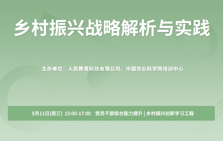 5月11日(周三)15:00-17:00,“人民學(xué)習(xí)·鄉(xiāng)村振興創(chuàng)新學(xué)習(xí)工程”直播課程,將為大家?guī)?lái)“鄉(xiāng)村振興戰(zhàn)略解析與實(shí)踐”系列課程。