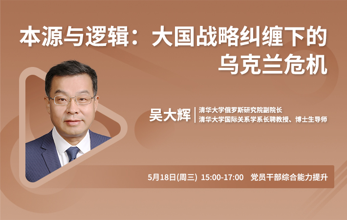 5月18日(周三)15:00-17:00,“人民學(xué)習(xí)·黨員干部綜合能力提升”直播課程,將由清華大學(xué)俄羅斯研究院副院長(zhǎng),清華大學(xué)國(guó)際關(guān)系學(xué)系長(zhǎng)聘教授、博士生導(dǎo)師吳大輝講授《本源與邏輯:大國(guó)戰(zhàn)略糾纏下的烏克蘭危機(jī)》。