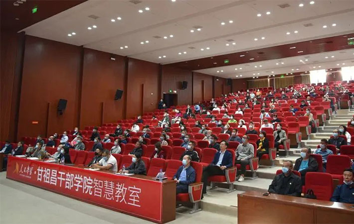 10月12日下午,江西省萍鄉市甘祖昌干部學院“人民學習”智慧教室再次開講。本次課程由國防大學教授、中國人民解放軍少將金一南講授《大變局時代:挑戰與機遇》,江西省新余市委黨校“十四五”規劃第四期縣級干部進修班、蓮花縣2022年第二期科級干部暨優秀年輕干部培訓班及學院全體干部職工等近300人參與學習了課程。