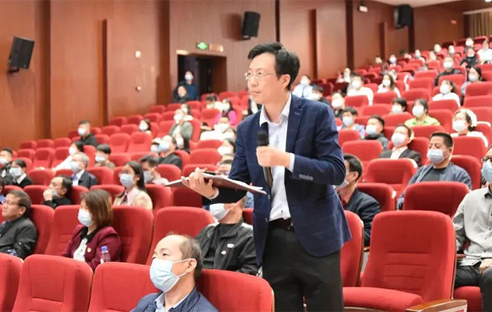 新余市委黨校“十四五”規劃第四期縣級干部進修班學員諶業與金一南進行線上互動提問。