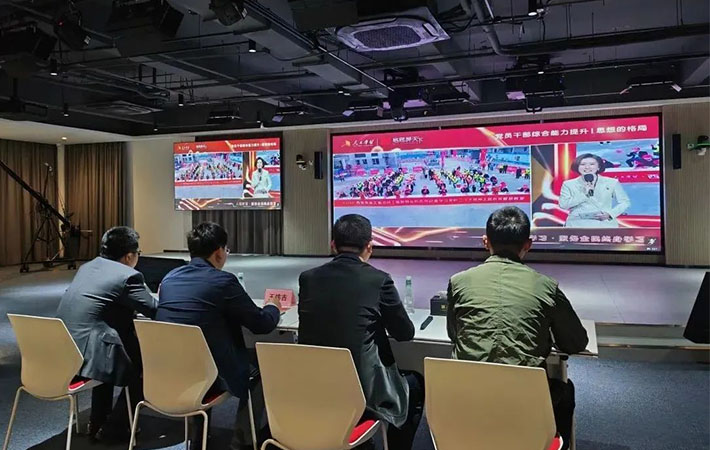 現場青年學員通過人民教育科技有限公司“人民學習”平臺,集中學習了由中國發展改革報社副社長、中央廣播電視總臺特約評論員楊禹講授的《向著偉大復興 知重負重再出發——黨的二十大精神解讀》直播精彩課程。陜西西安、四川成都、山東濟南、海南三沙等100多個市縣的500余家“人民學習·智慧教室”共同實時參加了本次課程學習。