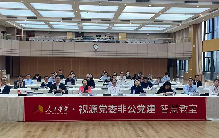 全體參會人員通過“人民學習·視源黨委非公黨建智慧教室”學習場景。