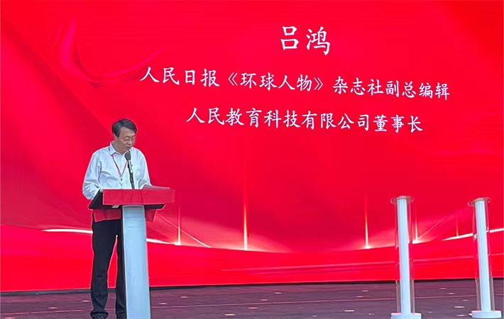 人民日報《環球人物》雜志社副總編輯、人民教育科技有限公司董事長呂鴻發表致辭。