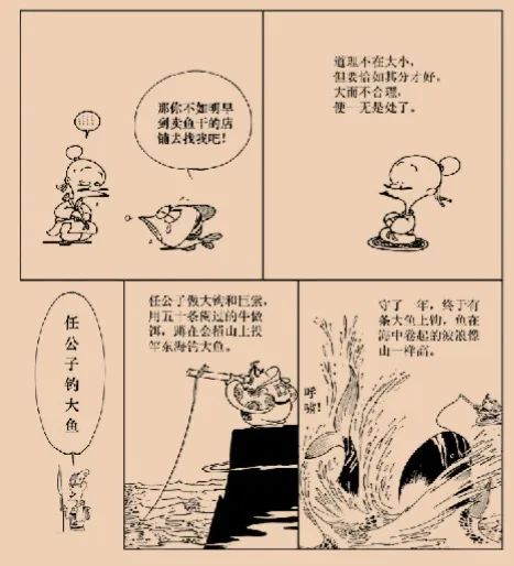 在外、雜篇中,楊立華最喜歡的故事源自《莊子·外物》篇:莊子家貧,跑到監河侯家里借錢,監河侯說手頭不寬裕,等到年終向百姓征收到稅糧再借給他。莊子聽后,忿然作色,給監河侯講了一個故事,說來的路上,聽到有聲音叫自己,原來是車轱轆印的坑里有水,水里有條鮒魚,鮒魚請他弄一瓢水來解渴,他回應說:“你別急,我過兩天要到南方去游歷,我會引西江之水來救你。”鮒魚很生氣,“等你引來水,我都變成魚干了”。接著,他對監河侯說,等你收來邑金,你也只能到賣魚干的地方來找我了。