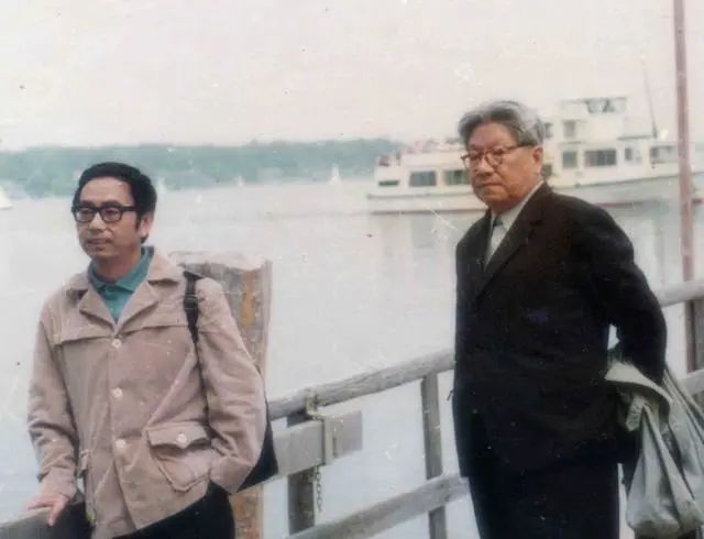1982年,楊武能(左)與導師馮至在德國萊茵河畔合影
