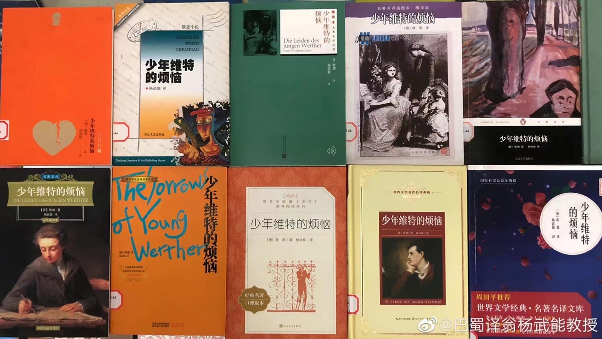 其中最具影響力的,當數1981年出版的《少年維特的煩惱》(以下簡稱《維特》)。1774年,24歲的歌德寫下這本薄薄的小書,在歐洲掀起一陣“維特熱”。一個半世紀后的1922年,郭沫若執筆推出了第一個《維特》全譯本,“青年男子誰個不善鐘情?妙齡女人誰個不善懷春”的詩句在青年中流傳不息,匯成一片對封建禮教的抗議之聲。楊武能的重譯,適逢歌德逝世150周年前后,出版后大受歡迎。愛而不得、在社會上不斷碰壁后自殺的維特,觸動了心性敏感的文學青年們。在楊武能收到的讀者來信中,有人“流下了同情的淚水”,有人“督促自己一字一句地讀”,有人結合自己的遭遇創作了中國版的維特故事。