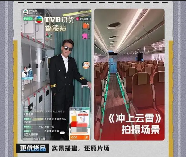 最值得一提的是,TVB還把片場搬到直播間,還原經典。這次直播以經典劇目《沖上云霄》為主題。據介紹,直播間進行的是實景搭建,最大程度還原了《沖上云霄》當時的拍攝場景和經典造型。