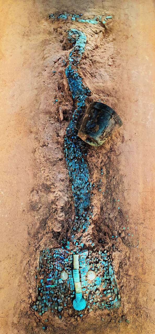 Honored as"the First Dragon of China, "the turquoise dragon-shaped artifact was unearthed from the tomb of a high-ranking nobleman at the Erlitou site in Henan Province. Its exquisite workmanship and large size are rare among early Chinese dragon artifacts, marking a pivotal point in the evolution of the dragon motif in Chinese culture. It is currently on display in the museum in the same condition as when it was unearthed.