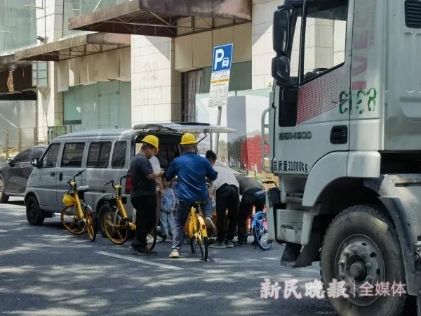 一輛面包車(chē)停在靠近南京西路2068號(hào)出入口附近,距離工地3號(hào)門(mén)10多米的地方。