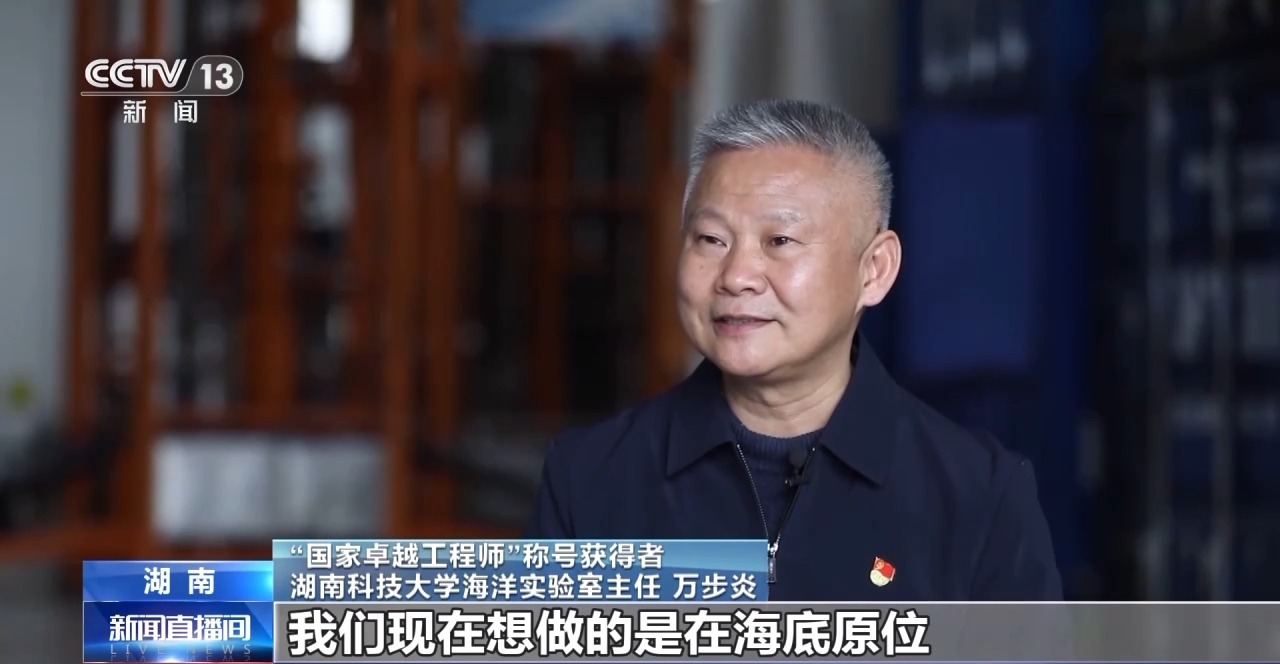 “國(guó)家卓越工程師”稱號(hào)獲得者 湖南科技大學(xué)海洋實(shí)驗(yàn)室主任 萬(wàn)步炎:我們現(xiàn)在想做的是在海底原位,就是在原地進(jìn)行巖石力學(xué)還有土工力學(xué)方面的一些測(cè)試。這個(gè)一般是用于工程地質(zhì)勘探,就像建房子一樣,要知道地基的牢固程度。