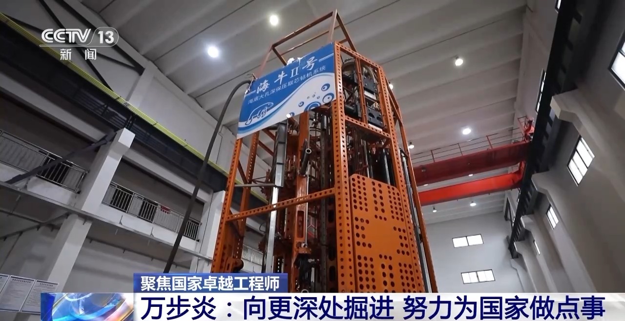 2015年,萬(wàn)步炎科研團(tuán)隊(duì)研發(fā)的“海牛號(hào)”取得成功,改寫了我國(guó)深海海底鉆機(jī)的鉆探紀(jì)錄。2021年,萬(wàn)步炎帶著他們研發(fā)的“海牛Ⅱ號(hào)”向著2000米的深海進(jìn)發(fā)。在抵達(dá)2060米的海底后,時(shí)年57歲的萬(wàn)步炎自己操控鉆機(jī)20多個(gè)小時(shí),鉆機(jī)的鉆探深度最終停留在231米,創(chuàng)造了當(dāng)時(shí)海底鉆機(jī)鉆探深度新的世界紀(jì)錄。除了鉆得深,“海牛Ⅱ號(hào)”還帶回來(lái)了珍貴的可燃冰,這不僅填補(bǔ)了我國(guó)鉆深大于100米、具備保壓取芯功能的深海海底鉆機(jī)裝備的空白,也刷新了世界深海海底鉆機(jī)的鉆深紀(jì)錄,意味著我國(guó)在理論上具備了海洋礦產(chǎn)資源全覆蓋的勘探能力,為我國(guó)加快建設(shè)海洋強(qiáng)國(guó)、實(shí)現(xiàn)高水平科技自立自強(qiáng)作出了突出貢獻(xiàn)。