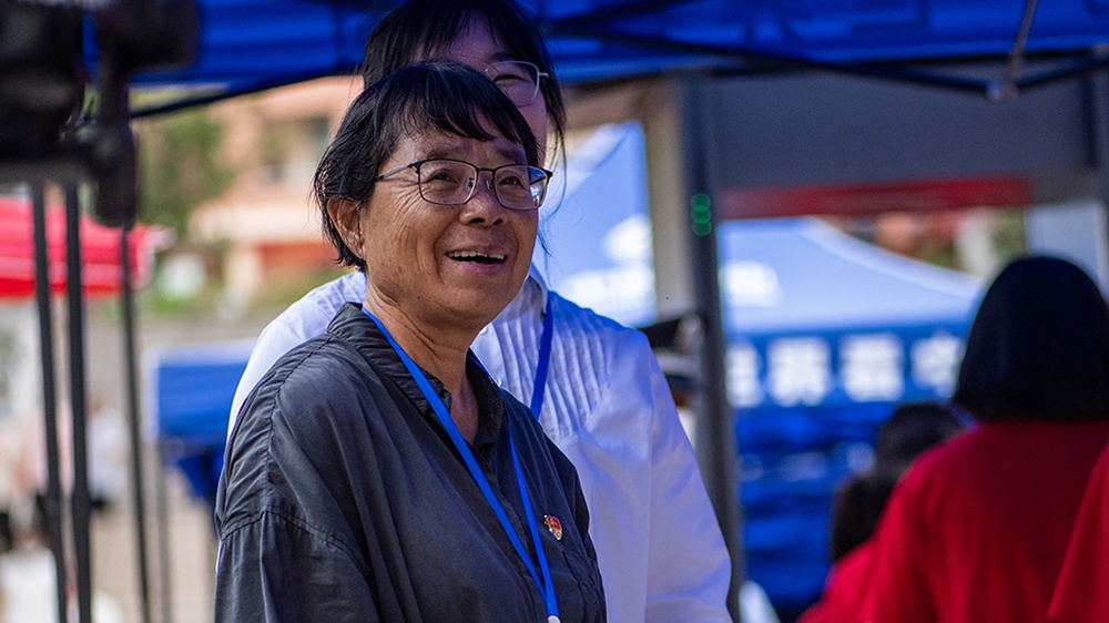 2023年6月7日,張桂梅在考點前看著學生進場待考。新華社 資料圖