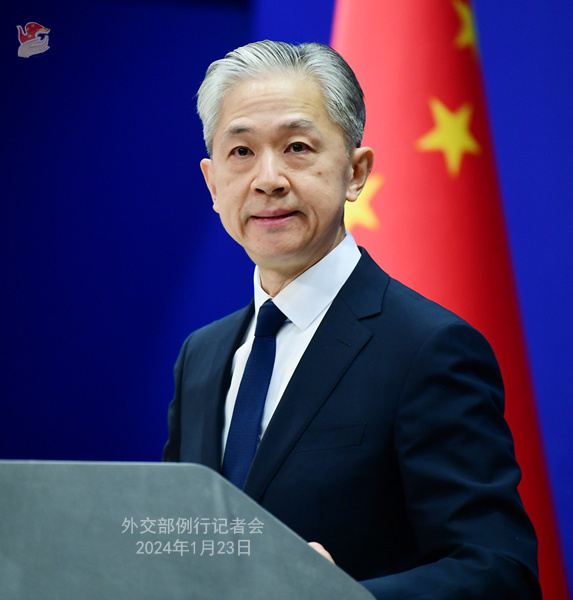 1月23日,外交部發言人汪文斌主持例行記者會。