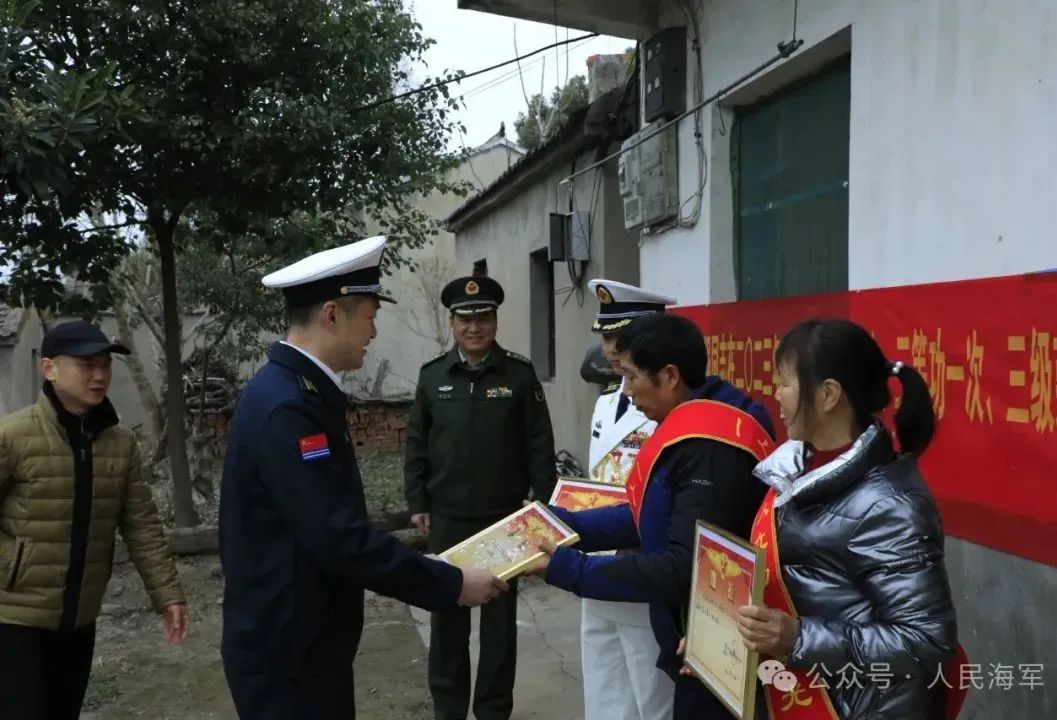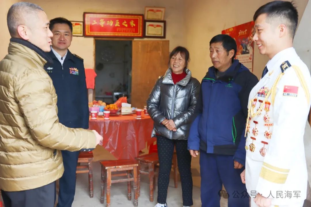 為立功受獎的軍官劉強登門送喜