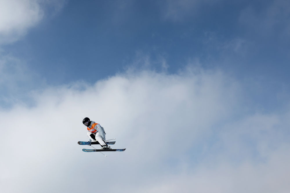 1月27日,肖思雨在自由式滑雪女子大跳臺預賽中。新華社記者 李明 攝