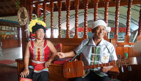 1959年出生的巖瓦洛是布朗族彈唱傳承人,他在家鄉(xiāng)曼芽村小組建立了布朗彈唱傳習(xí)所和布朗族民族文化展示館。他說(shuō):“我們布朗族男孩子如果不會(huì)唱歌跳舞,就找不到媳婦。所以我學(xué)會(huì)了唱歌跳舞,因此也遇到了我的愛人,我們一起對(duì)唱。”如今,巖瓦洛的女兒、女婿也是布朗族彈唱的傳承人。