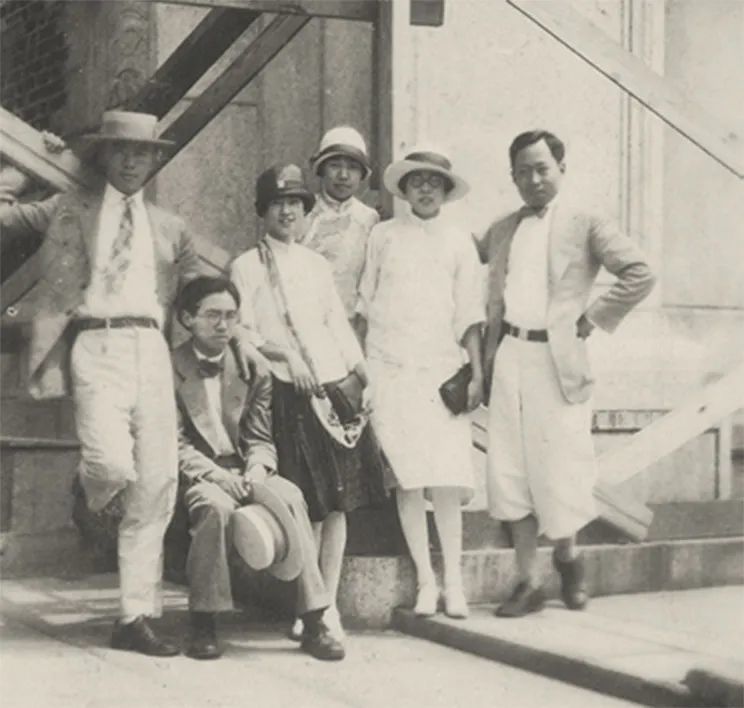 上世紀二十年代賓大部分留學生合影,從左至右楊廷寶、梁思成、林徽因、陳意、孫熙明、趙深 楊廷寶家屬圖