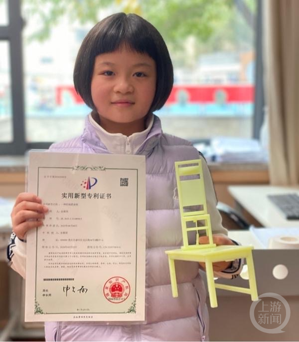 今年3月,這款防地震桌椅獲得了國家知識產權局頒發的實用新型專利證書,并獲得2024年宋慶齡少年兒童發明獎重慶賽區小學組金獎。