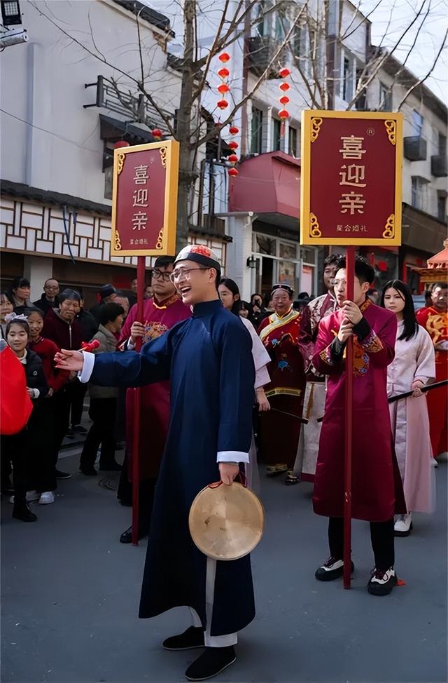 俞鑫在古城中式婚禮中擔(dān)當(dāng)司儀領(lǐng)隊(duì)接親。