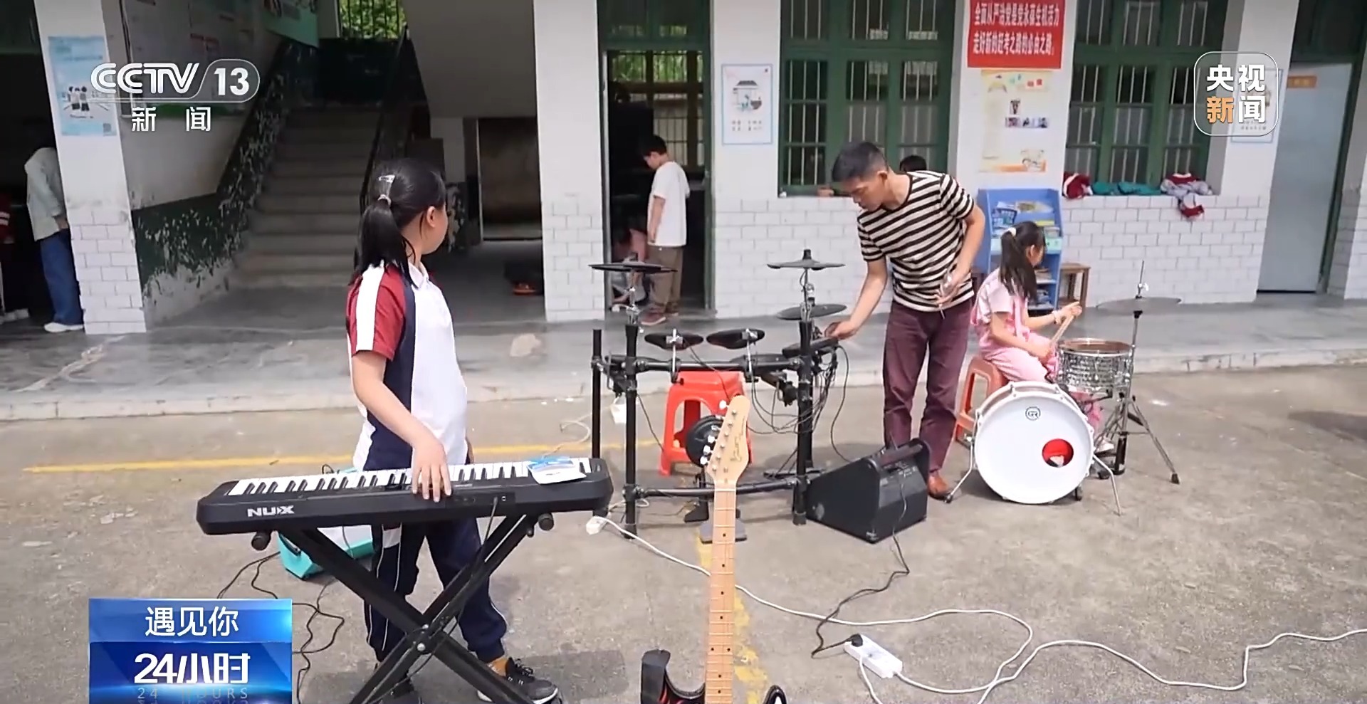 五月時節,陽光照進群山環抱的湖南衡陽縣岣嶁鄉妙溪小學,音樂教室里傳來歡快的樂曲演奏聲。幾個孩子正在練習貝斯、電子琴和架子鼓,為他們的演出認真做準備。