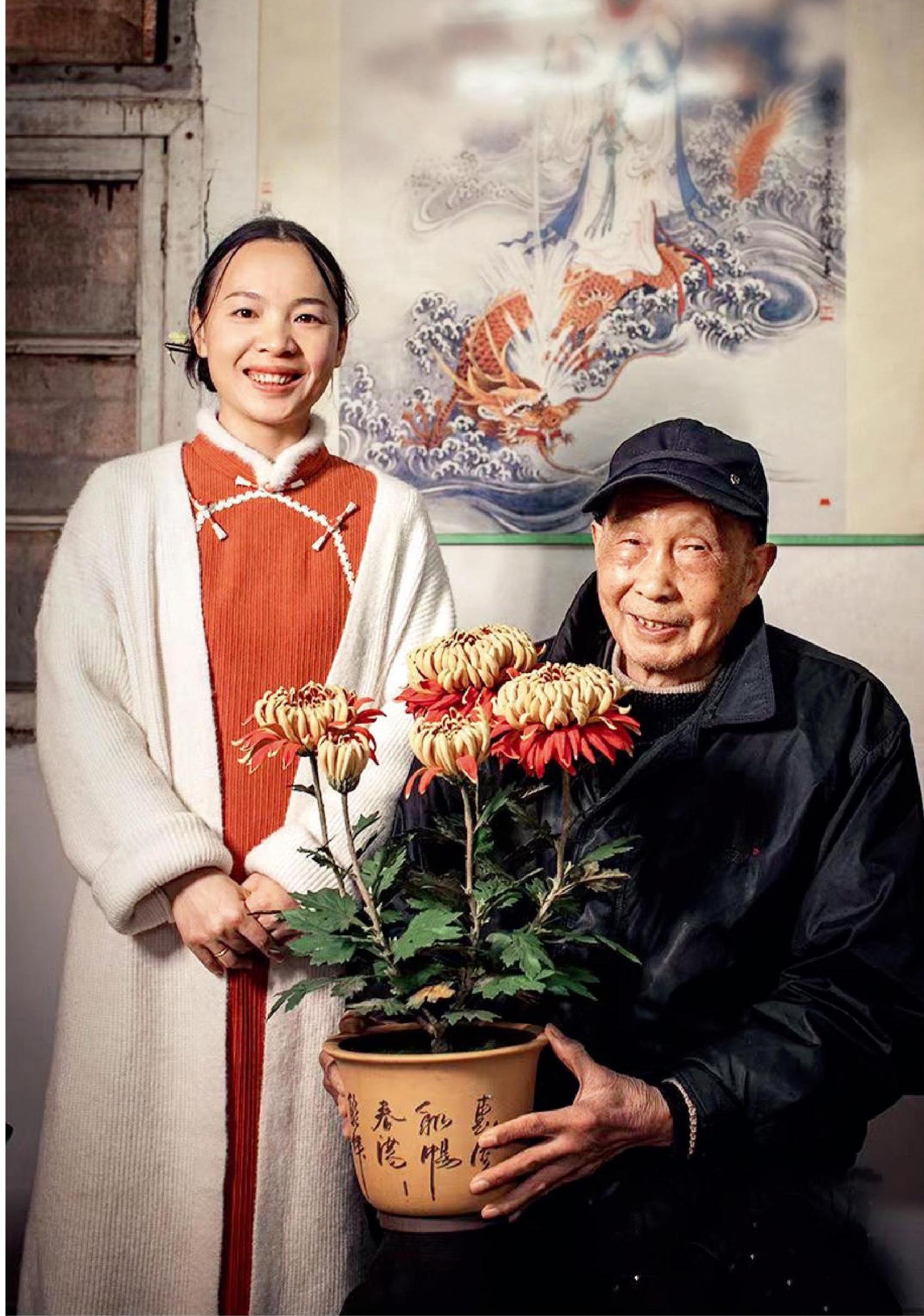 值得一提的是,因為做短視頻,朱欣還收獲了愛情。當時,師父的通草花工作室旁邊有一家木雕工作室,老板是揚州木雕技藝非遺傳承人周善生。“我發現他也在通過短視頻宣傳非遺,但感覺他不太清楚平臺規則,總像打廣告。我說你不能這樣弄,搞不好會被限流甚至封號,他就讓他兒子周文華加我微信聊這個事。我們都是手藝人,比較聊得來,就慢慢走到一起了。”