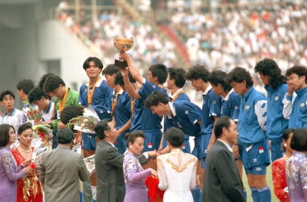 1993年9月15日,遼寧隊獲七運會足球賽冠軍。新華社記者黃本強攝