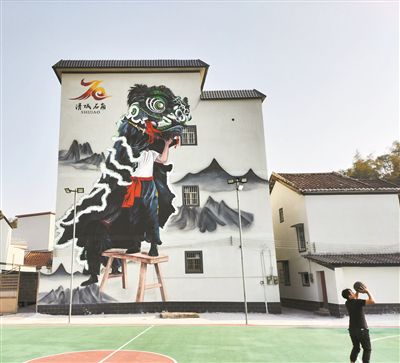 何小強投入到鄉(xiāng)村振興的墻繪創(chuàng)作。