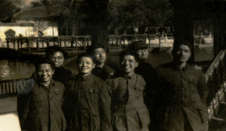 1952年在清華大學石油系與系內部分青年教師合影(前排左二為方華燦) 新華社發