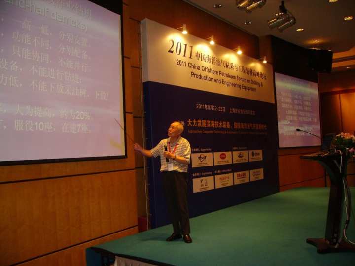 2011年,方華燦在上海參加中國海洋油氣鉆采與工程裝備高峰論壇時作學術報告 新華社發