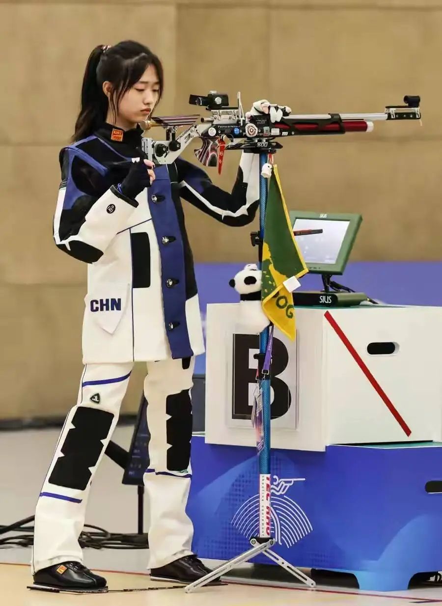 過去,在黃雨婷的槍架上總是掛著一只萌萌的大熊貓玩偶。黃雨婷說,這只熊貓伴隨她走過不少大賽。在巴黎奧運會上,黃雨婷戴著一枚可愛的黃色小發卡出戰。用網友的話說:“戴最萌的發卡,打最狠的槍。”