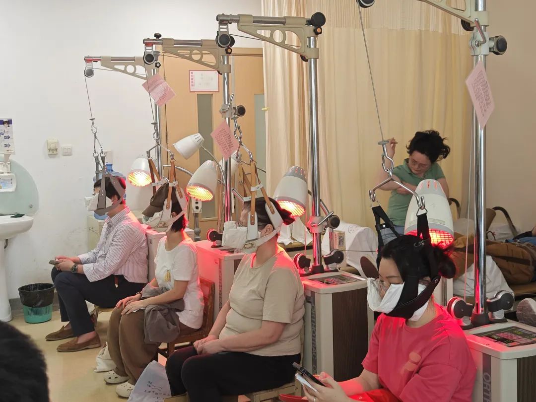 ▲就診人員正在接受頸椎牽引治療。