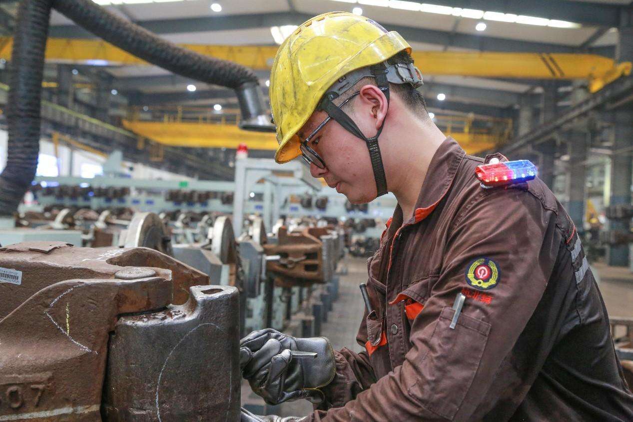 滿(mǎn)臉漲紅,一身油漬,懷抱60-70斤重鉤舌,弓著腰半蹲著拆卸下來(lái),汗水浸濕了頭發(fā),順著帽沿、側(cè)臉、下巴顆顆滑落地面,身上的衣服擰巴著貼在皮膚上,讓人又燥又熱。“最累的還是車(chē)鉤拆裝,有段時(shí)間天天拆裝車(chē)鉤,人都累癱了。”徐旻濤擦了擦額角的汗珠說(shuō)。