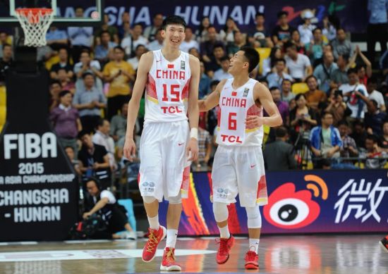 周琦(左)與郭艾倫(右)2015年攜手出戰男籃亞錦賽 圖/中新圖片 中新社記者 楊華峰 攝