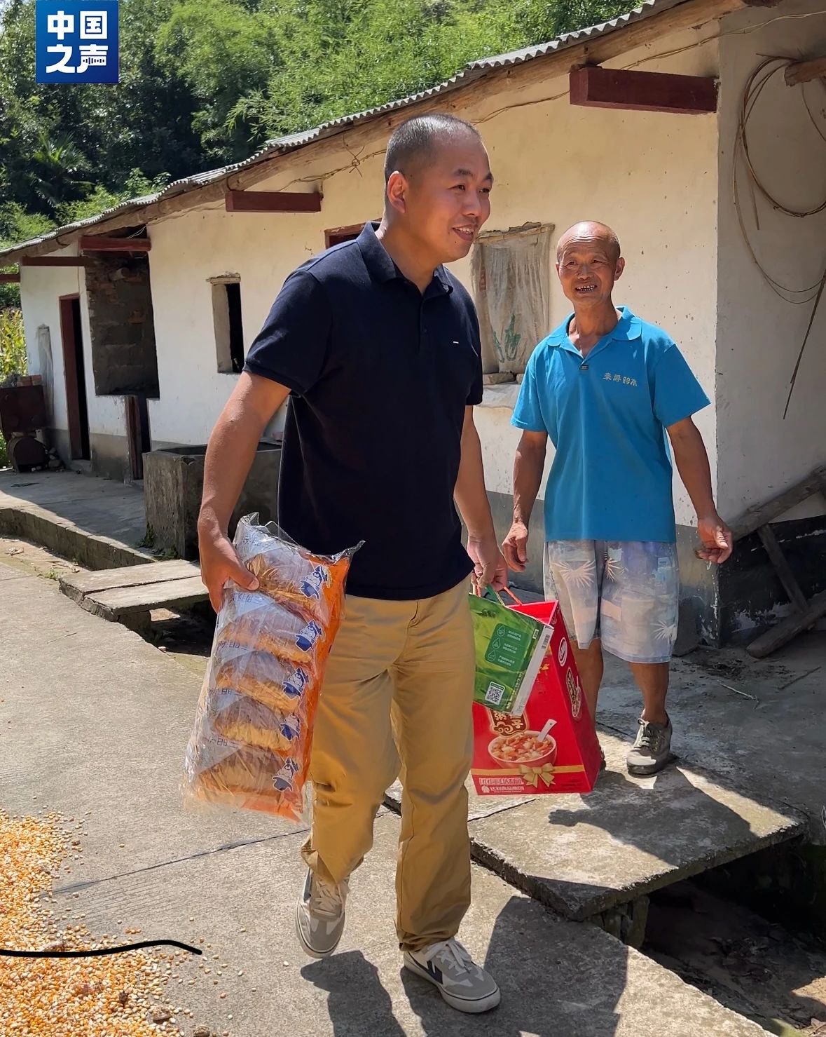 宋來波帶著禮物看望捐款村民