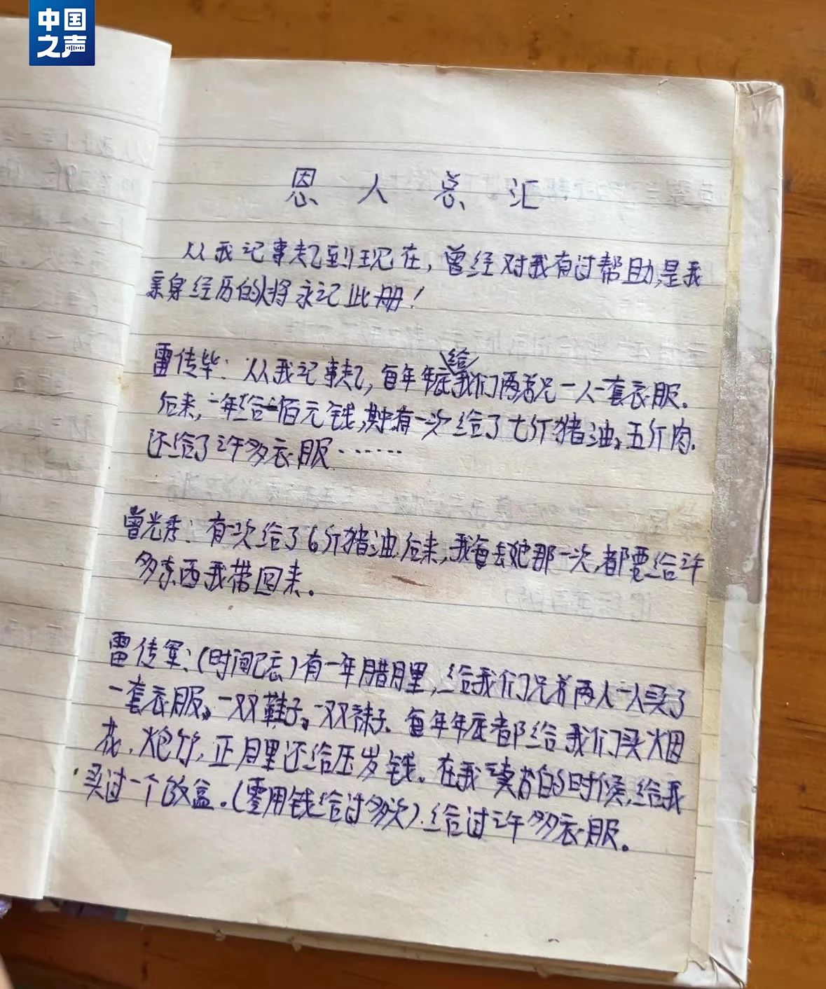 筆記本中詳細記錄著村民捐款情況